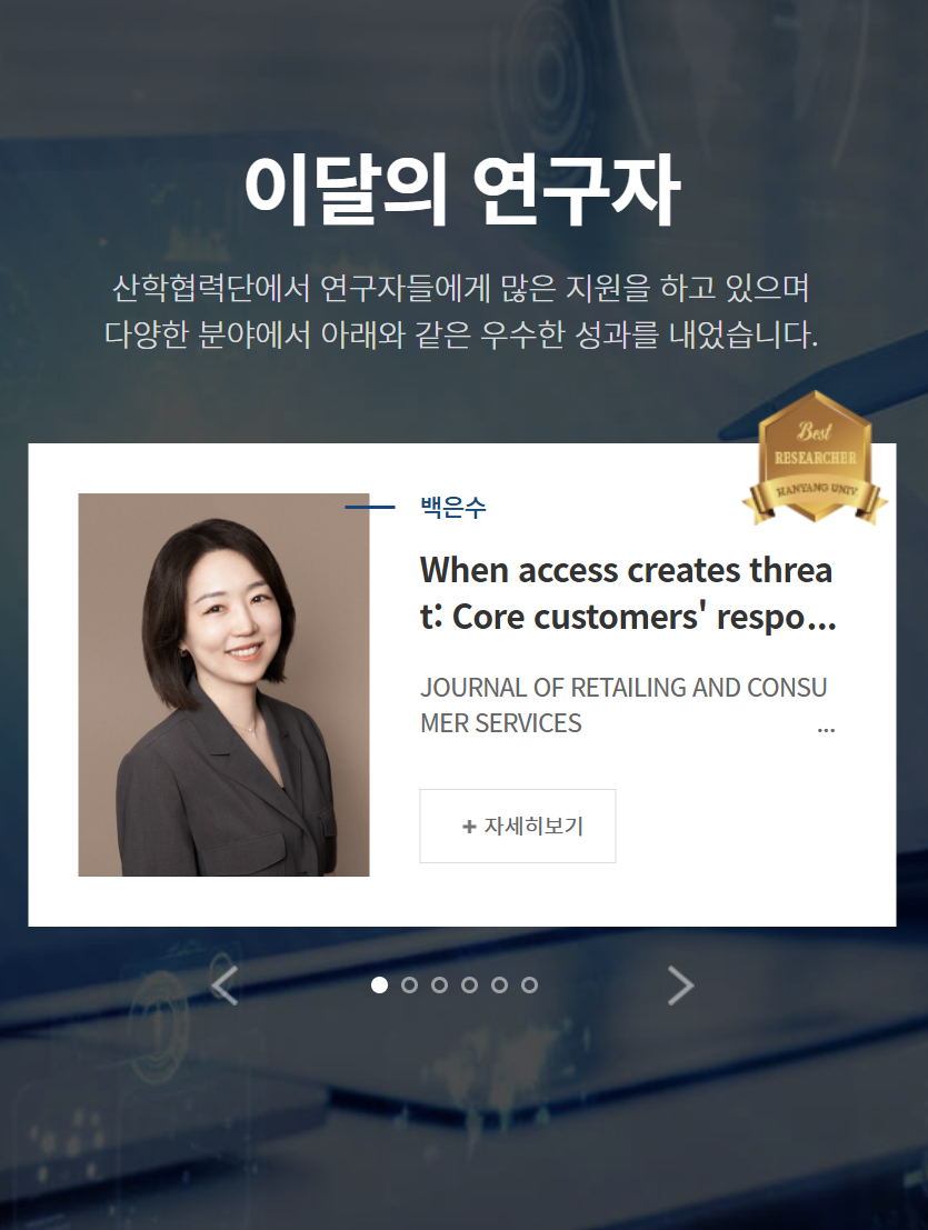 2026년 3월, 우리 FMC 연구실 김은지 석사과정학생과 함께 한 “When Access Creates Threat: Core Customers’ Responses to In-House Rental Services” 의 Journal of Retailing and Consumer Services 게재로 이달의 연구자(Researcher of the Month)로 선정되었습니다.